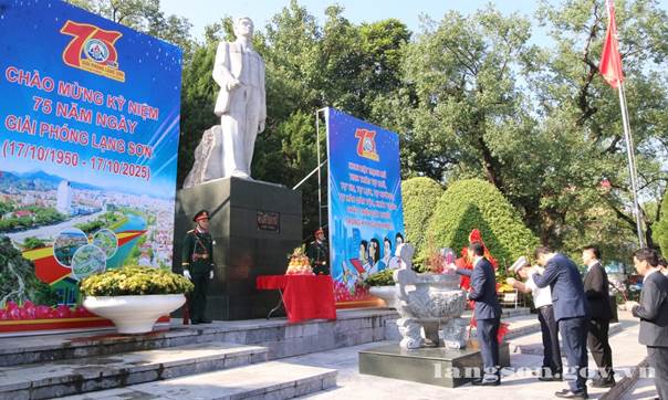 Sáng 17/10/2025, nhân dịp kỷ niệm 75 năm Ngày giải phóng Lạng Sơn (17/10/1950 - 17/10/2025), Đoàn đại biểu của tỉnh Lạng Sơn do đồng chí Hoàng Quốc Khánh, Bí thư Tỉnh ủy làm trưởng đoàn đã dâng hương, dâng hoa tại Khuôn viên lưu niệm Chủ tịch Hồ Chí Minh, Tượng đài đồng chí Hoàng Văn Thụ và viếng Nghĩa trang liệt sĩ Lạng Sơn.
