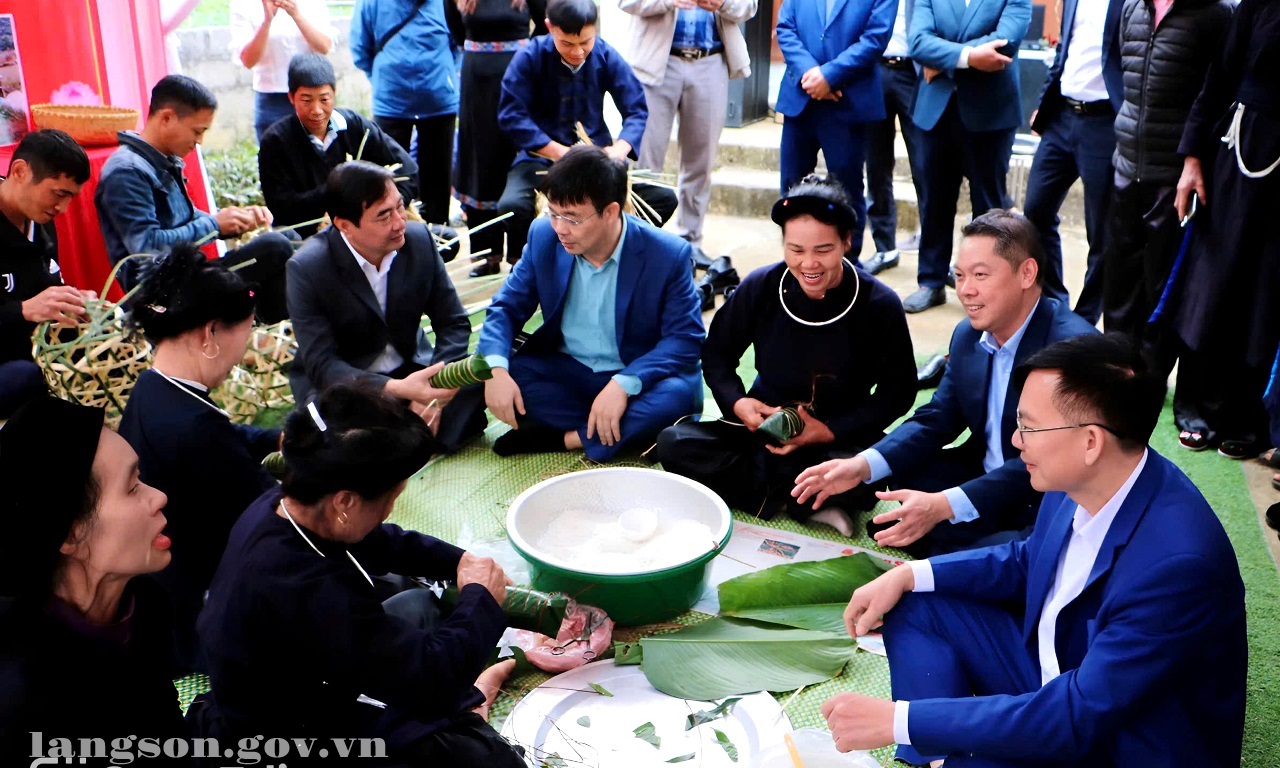 Đồng chí Đoàn Thanh Sơn, Phó Chủ tịch UBND tỉnh cùng dự gói bánh chưng cùng bà con nhân dân