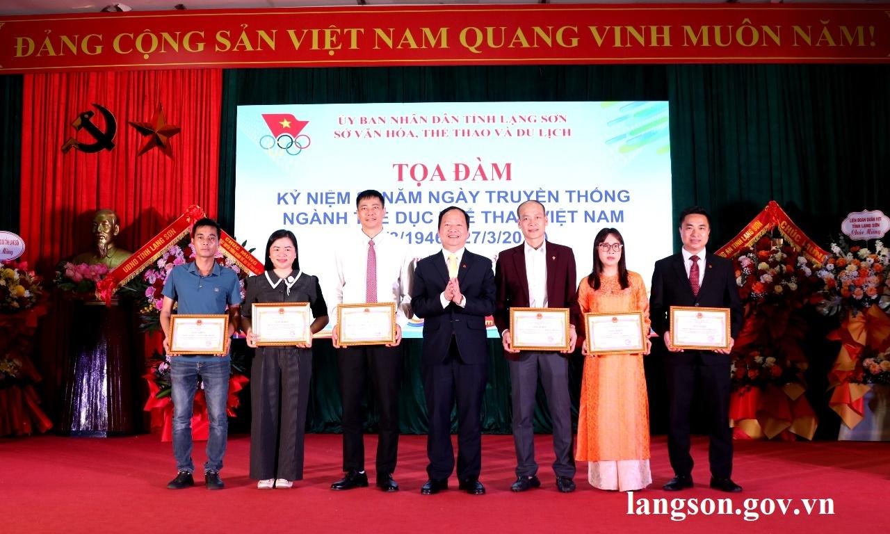 Nhân dịp này, 7 tập thể và 12 cá nhân có thành tích xuất sắc trong phong trào thi đua chào mừng kỷ niệm 80 năm Ngày truyền thống ngành TDTT Việt Nam đã được nhận giấy khen của Giám đốc Sở VHTT&DL tỉnh.