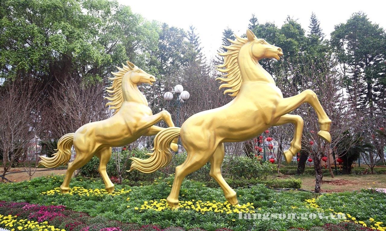 Linh vật ngựa được trưng bày tại khu vực đường hoa xuân