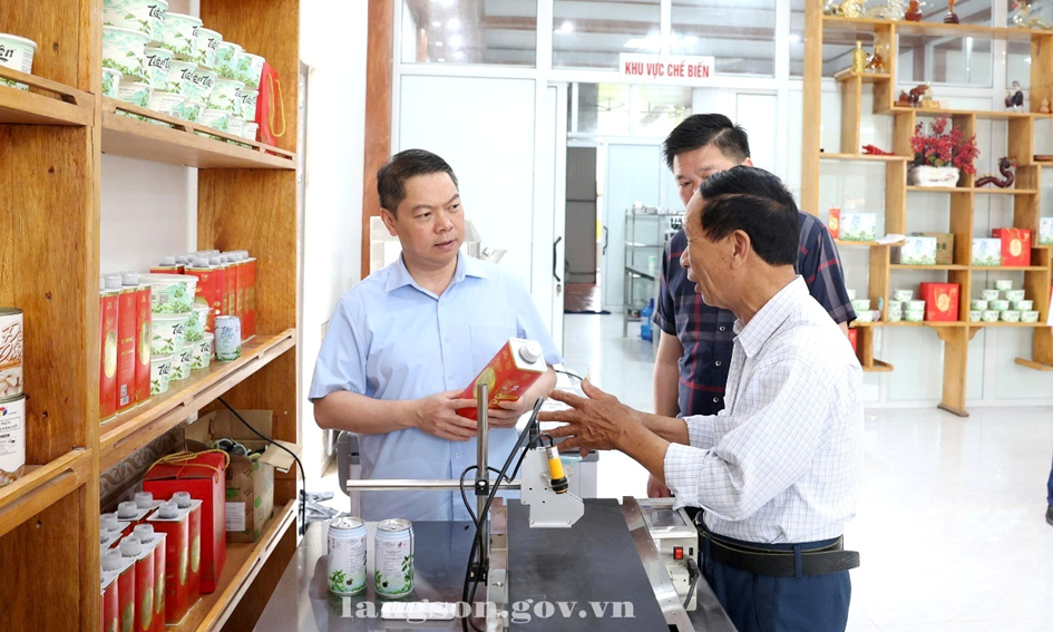 Đồng chí Đoàn Thanh Sơn, Phó Chủ tịch UBND tỉnh kiểm tra thực tế mô hình sản xuất, kinh doanh thạch đen trên địa bàn xã Tràng Định