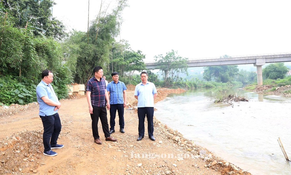 Đồng chí Đoàn Thanh Sơn, Phó Chủ tịch UBND tỉnh kiểm tra thực tế Dự án Kè khắc phục sạt lở bờ sông Bắc Khê xã Tràng Định