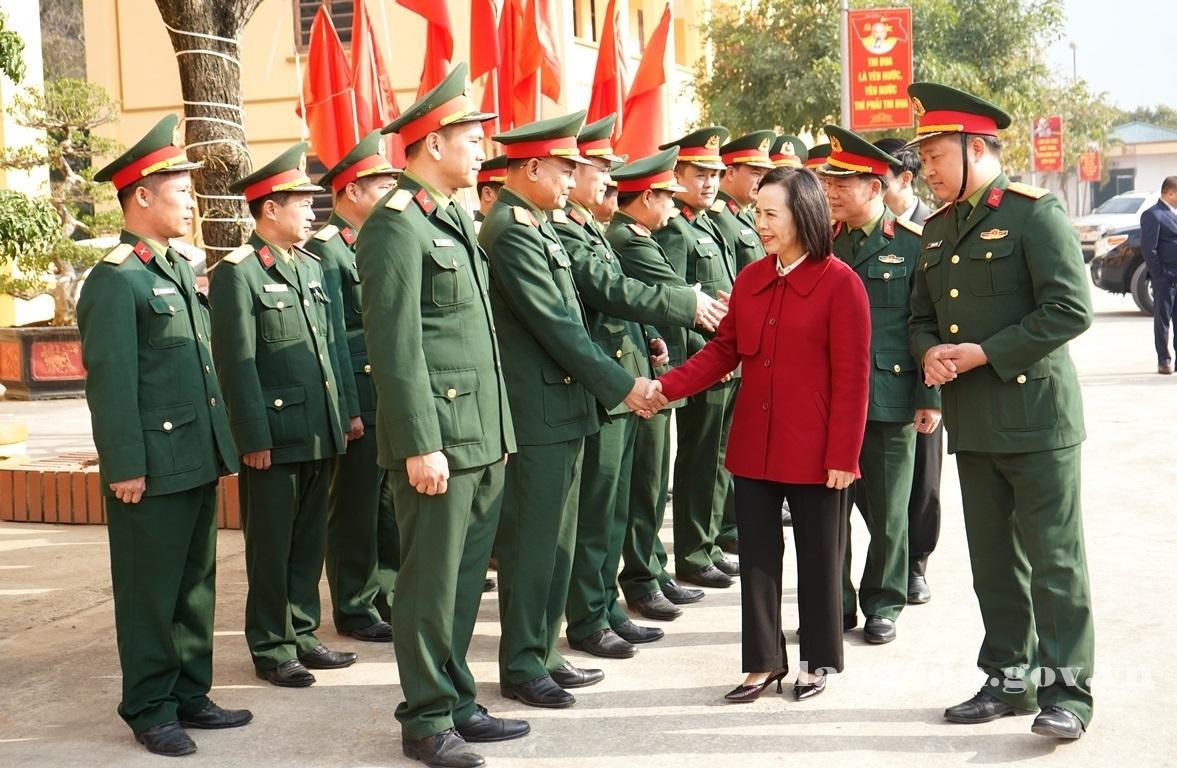 Đồng chí Đoàn Thị Hậu, Phó Bí thư Thường trực Tỉnh ủy, Chủ tịch HĐND tỉnh thăm, chúc Tết Ban Chỉ huy Phòng thủ khu vực 3 tại xã Nhân Lý