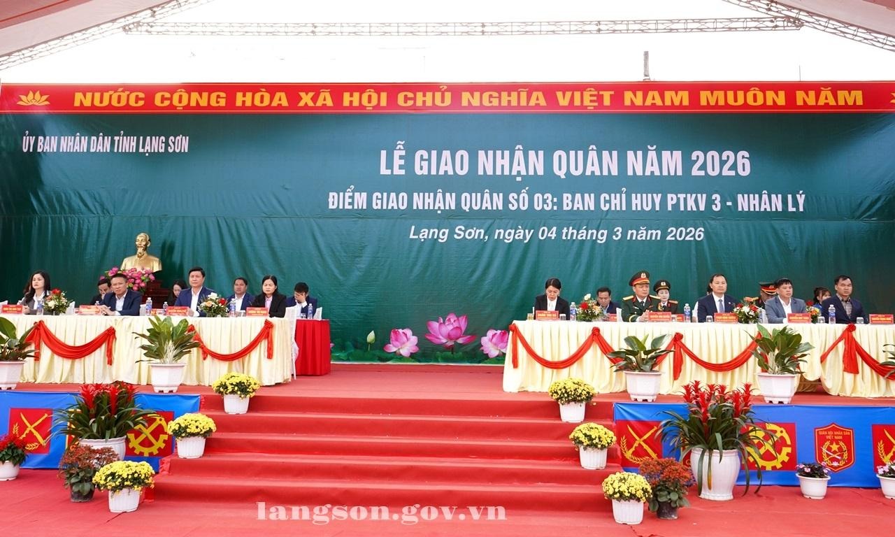 Sáng ngày 04/03/2026 (tức ngày 16 tháng Giêng năm Bính Ngọ), tại xã Hữu Lũng, đồng chí Đoàn Thu Hà, Phó Bí thư Tỉnh uỷ, Chủ tịch Uỷ ban MTTQ Việt Nam tỉnh dự Lễ giao nhận quân năm 2026 tại Điểm giao nhận quân số 3 - Ban Chỉ huy Phòng thủ khu vực 3 - Nhân lý. Cùng dự có lãnh đạo một số sở, ngành của tỉnh; lãnh đạo Đảng uỷ 8 xã: Hữu Lũng, Tân Thành, Tuấn Sơn, Cai Kinh, Vân Nham, Hữu Liên, Thiện Tân, Yên Bình.