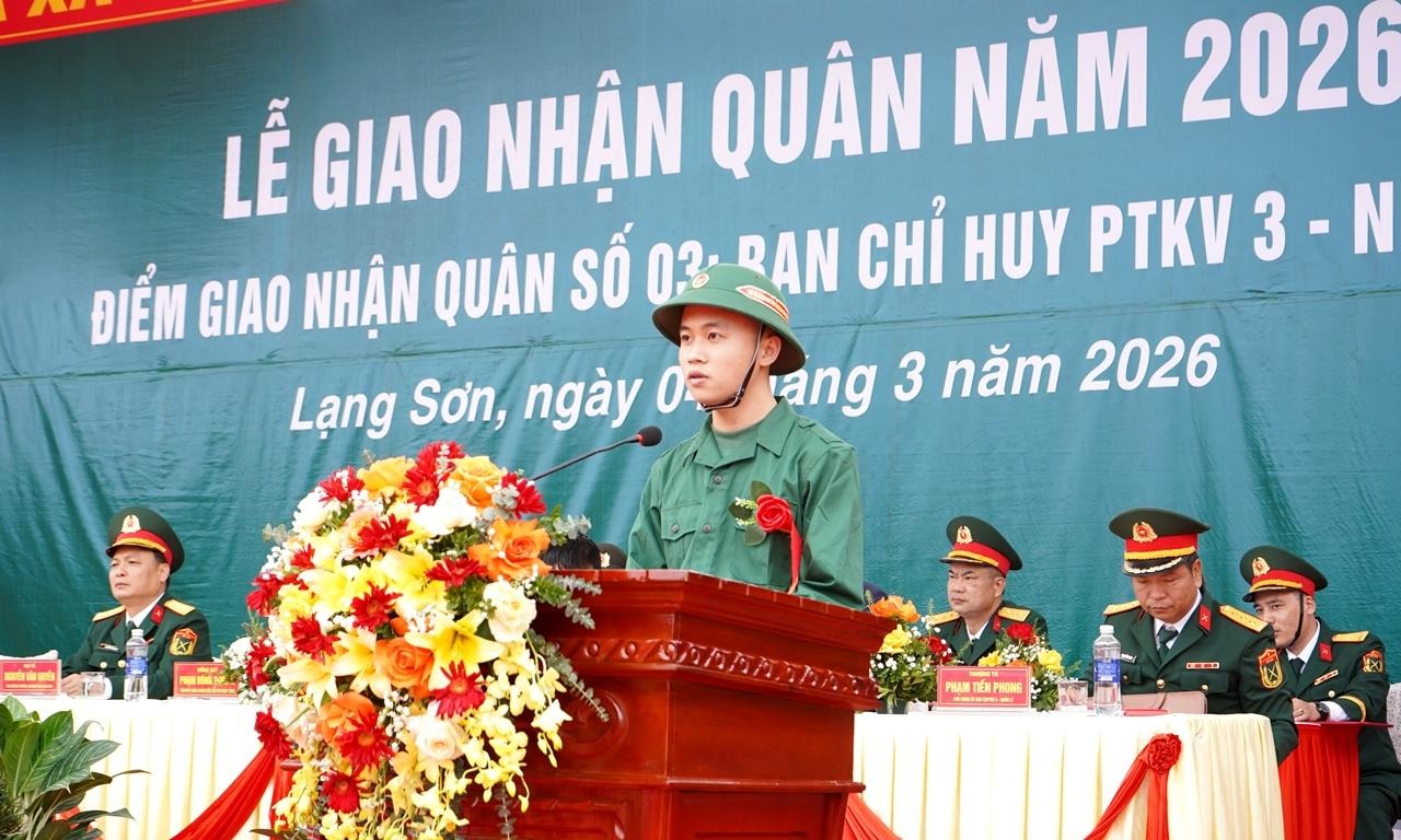 Phát biểu tại Lễ giao nhận quân, đồng chí Đoàn Thu Hà, Phó Bí thư Tỉnh uỷ, Chủ tịch Uỷ ban MTTQ Việt Nam tỉnh biểu dương cấp ủy, chính quyền, Hội đồng nghĩa vụ quân sự các địa phương đã nêu cao tinh thần trách nhiệm, nghiêm túc thực hiện đúng quy trình tuyển chọn, gọi công dân nhập ngũ năm 2026. Đồng chí bày tỏ tin tưởng rằng, các tân binh sẽ phát huy truyền thống của quê hương Anh hùng, truyền thống vẻ vang của các thế hệ cha anh đi trước, phát huy bản chất tốt đẹp của bộ đội Cụ Hồ, luôn nỗ lực phấn đấu về mọi mặt, ra sức học tập, rèn luyện, chấp hành tốt kỷ luật Quân đội, Công an, hoàn thành xuất sắc mọi nhiệm vụ được giao.