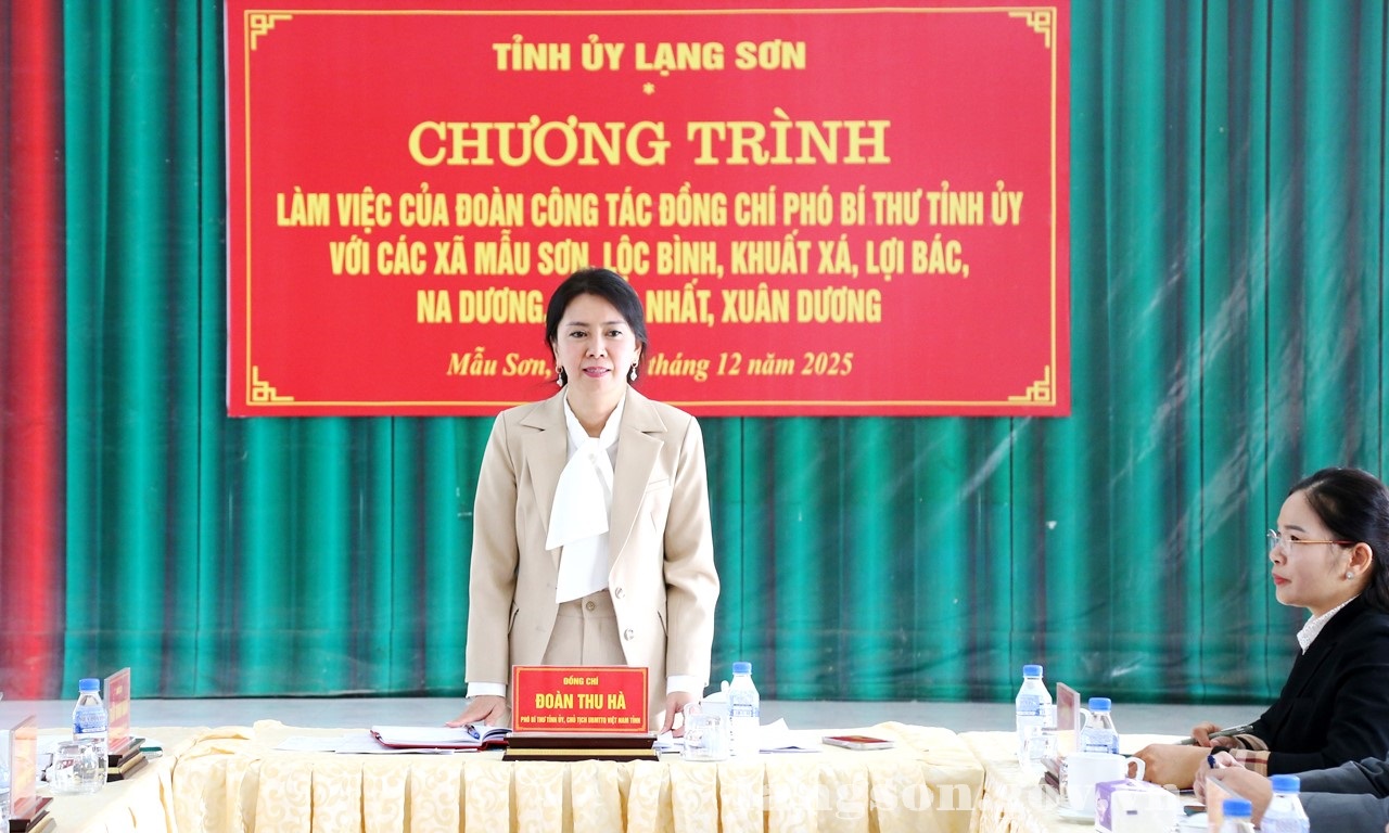 Ngày 17/12/2025, Đoàn công tác của tỉnh do đồng chí Đoàn Thu Hà, Phó Bí thư Tỉnh ủy, Chủ tịch Ủy ban MTTQ Việt Nam tỉnh làm Trưởng đoàn đã khảo sát, kiểm tra tình hình thực hiện công tác xóa nhà tạm, nhà dột nát tại các xã Lộc Bình, Thống Nhất, Na Dương, Xuân Dương, Lợi Bác, Khuất Xá, Mẫu Sơn. Tham gia đoàn có đồng chí Trần Thanh Nhàn, Tỉnh ủy viên, Phó Chủ tịch UBND tỉnh; đại diện lãnh đạo Sở Xây dựng, Sở Dân tộc và Tôn giáo. Thành phần làm việc của các xã có thường trực đảng ủy các xã.