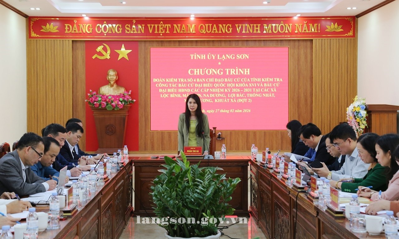 Ngày 27/02/2026, Đoàn kiểm tra số 4 của tỉnh do đồng chí Đoàn Thu Hà, Phó Bí thư Tỉnh ủy, Chủ tịch Ủy ban MTTQ Việt Nam tỉnh, Phó Trưởng Ban Chỉ đạo bầu cử tỉnh làm Trưởng đoàn đã kiểm tra công tác bầu cử đại biểu Quốc hội khóa XVI và bầu cử đại biểu HĐND các cấp nhiệm kỳ 2026 – 2031 tại các xã Lộc Bình, Mẫu Sơn, Na Dương, Lợi Bác, Thống Nhất, Xuân Dương, Khuất Xá. Tham gia đoàn công tác có đồng chí Trần Thanh Nhàn, Phó Chủ tịch UBND tỉnh, lãnh đạo một số sở, ngành tỉnh.