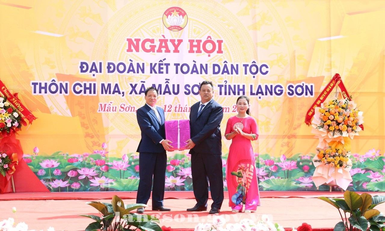 Nhân dịp này, đồng chí Đoàn Thu Hà, Phó Bí thư Tỉnh uỷ đã tặng hoa và 01 bộ máy tính cho thôn Chi Ma; lãnh đạo Uỷ ban MTTQ Việt Nam tỉnh tặng quà cho người uy tín của thôn; lãnh đạo các sở, ngành, xã Mẫu Sơn cũng có phần quà tặng thôn.