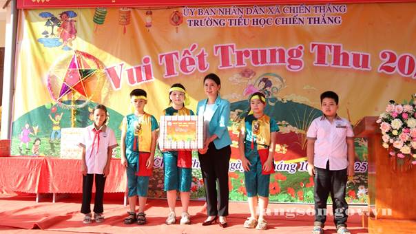 Nhân dịp này, đồng chí Phó Bí thư Tỉnh ủy và các thành viên trong đoàn đã tặng quà trung thu cho các em học sinh Trường Tiểu học Chiến Thắng.