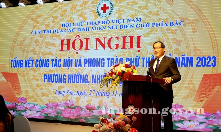 Chiều 27/11/2023, Cụm thi đua Hội Chữ thập đỏ (CTĐ) các tỉnh miền núi biên giới phía Bắc tổ chức hội nghị tổng kết công tác hội và phong trào CTĐ năm 2023, triển khai phương hướng nhiệm vụ năm 2024. Dự hội nghị có đồng chí Dương Xuân Huyên, Uỷ viên Ban Thường vụ Tỉnh uỷ, Phó Chủ tịch Thường trực UBND tỉnh Lạng Sơn; đồng chí Vũ Thanh Lưu, Phó Chủ tịch Hội CTĐ Việt Nam; lãnh đạo hội CTĐ các tỉnh trong cụm thi đua; lãnh đạo đại diện một số ban, ngành của tỉnh Lạng Sơn.