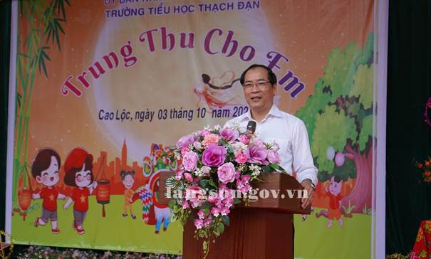 Phát biểu tại đây, đồng chí Dương Xuân Huyên, Phó Chủ tịch Thường trực UBND tỉnh biểu dương những nỗ lực, cố gắng và kết quả dạy và học của nhà trường. Đồng chí ân cần thăm hỏi, động viên, chúc các cháu thiếu nhi đón Tết Trung thu vui tươi, đầm ấm; đồng thời mong muốn các cháu tiếp tục cố gắng rèn luyện, chăm ngoan, học giỏi, vâng lời ông bà, cha mẹ, thầy cô, phấn đấu trở thành những công dân có ích cho xã hội, góp phần xây dựng quê hương giàu đẹp.