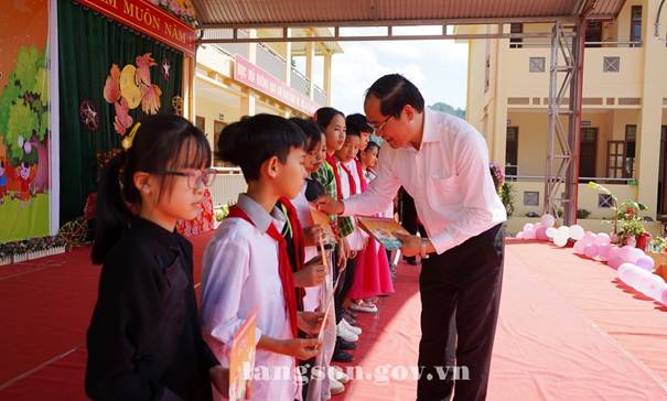 Đồng chí Dương Xuân Huyên, Phó Chủ tịch Thường trực UBND tỉnh thăm, tặng quà nhân dịp Tết Trung thu tại Trường Tiểu học Thạch Đạn, xã Cao Lộc