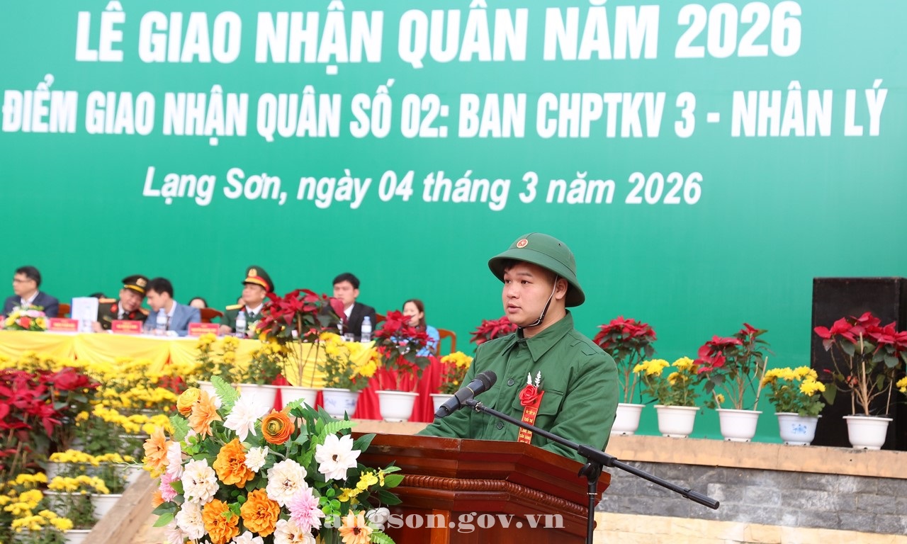 Sáng 04/3/2026, tại Sân Trung tâm Hội chợ thương mại Lạng Sơn, phường Tam Thanh; tỉnh Lạng Sơn long trọng tổ chức Lễ giao nhận quân năm 2026, Điểm giao nhận quân số 02: Ban Chỉ huy phòng thủ khu vực 3 - Nhân Lý (gồm các xã, phường: Cao Lộc, Đồng Đăng, Công Sơn, Ba Sơn, Hoàng Văn Thụ, Tam Thanh, Kỳ Lừa, Đông Kinh, Lương Văn Tri).