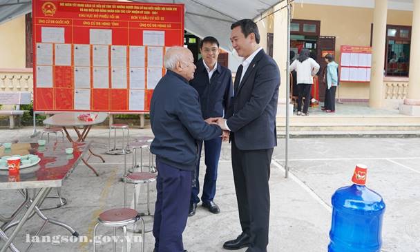 Đồng chí Nguyễn Cảnh Toàn, Chủ tịch UBND tỉnh dự lễ khai mạc và bỏ phiếu bầu cử tại khu vực bỏ phiếu số 6, Nhà văn hóa thôn Na Đâu, xã Hữu Lũng