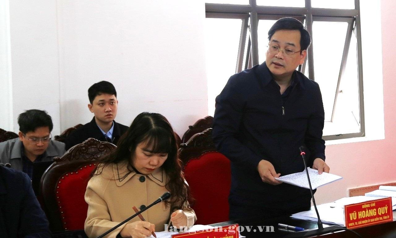 Đồng chí Vũ Hoàng Quý, Ủy viên Ban Thường vụ Tỉnh ủy, Chủ nhiệm Ủy Ban kiểm tra Tỉnh ủy, Phó trưởng đoàn kiểm tra điều hành thảo luận
