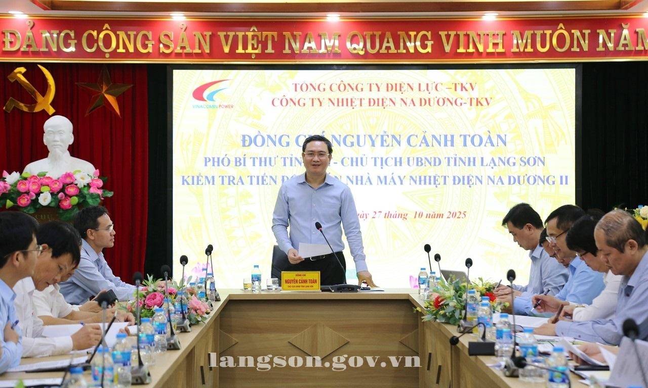 Chiểu 27/10/2025, đồng chí Nguyễn Cảnh Toàn, Phó Bí thư Tỉnh uỷ, Chủ tịch UBND tỉnh đã kiểm tra tiến độ triển khai các dự án (DA) Mở rộng nâng công suất mỏ than Na Dương; Nhà máy nhiệt điện Na Dương II; kè chống sạt lở bờ sông Kỳ Cùng, xã Lộc Bình.
