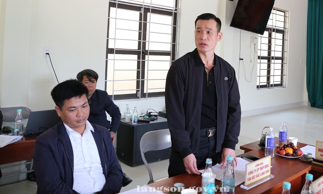 Lãnh đạo Công ty cổ phần Thuỷ điện Tân Việt Bắc Lạng Sơn báo cáo tình hình triển khai dự án