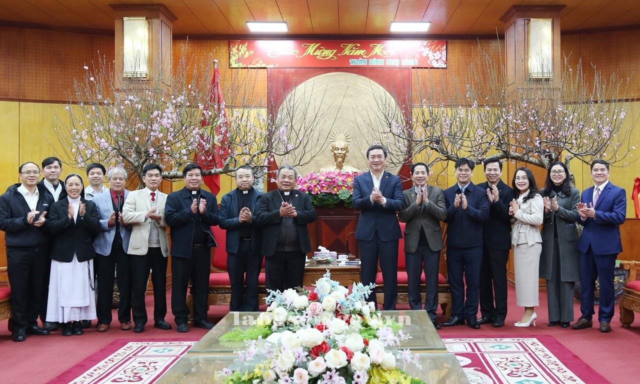 Đồng chí Nguyễn Cảnh Toàn, Chủ tịch UBND tỉnh tiếp Tòa Giám mục Giáo phận Lạng Sơn - Cao Bằng đến thăm, chúc Tết