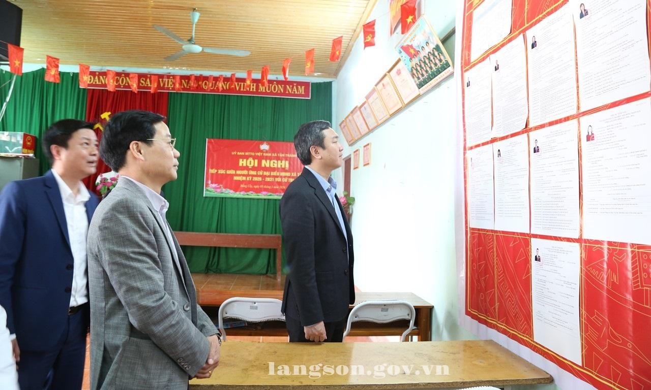 Đồng chí Nguyễn Cảnh Toàn, Phó Bí thư Tỉnh ủy, Chủ tịch UBND tỉnh kiểm tra công tác chuẩn bị bầu cử đại biểu Quốc hội khóa XVI và bầu cử đại biểu HĐND các cấp nhiệm kỳ 2026 - 2031 tại các xã: Hữu Lũng, Tuấn Sơn, Tân Thành, Vân Nham, Thiện Tân, Yên Bình, Hữu Liên và Cai Kinh