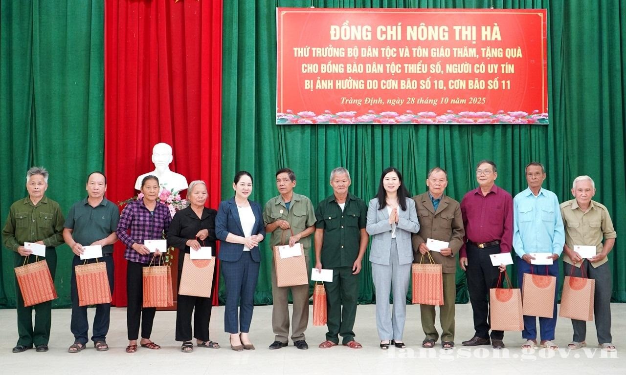Chiều 28/10/2025, Đoàn công tác của Bộ Dân tộc và Tôn giáo do đồng chí Nông Thị Hà, Thứ trưởng Bộ Dân tộc và Tôn giáo làm trưởng đoàn thăm, tặng quà đồng bào dân tộc thiểu số, người có uy tín bị ảnh hưởng do cơn bão số 10 và cơn bão số 11 trên địa bàn xã Thất Khê và xã Tràng Định. Tham gia cùng đoàn có đồng chí Trần Thanh Nhàn, Phó Chủ tịch UBND tỉnh; lãnh đạo Sở Dân tộc và Tôn giáo.