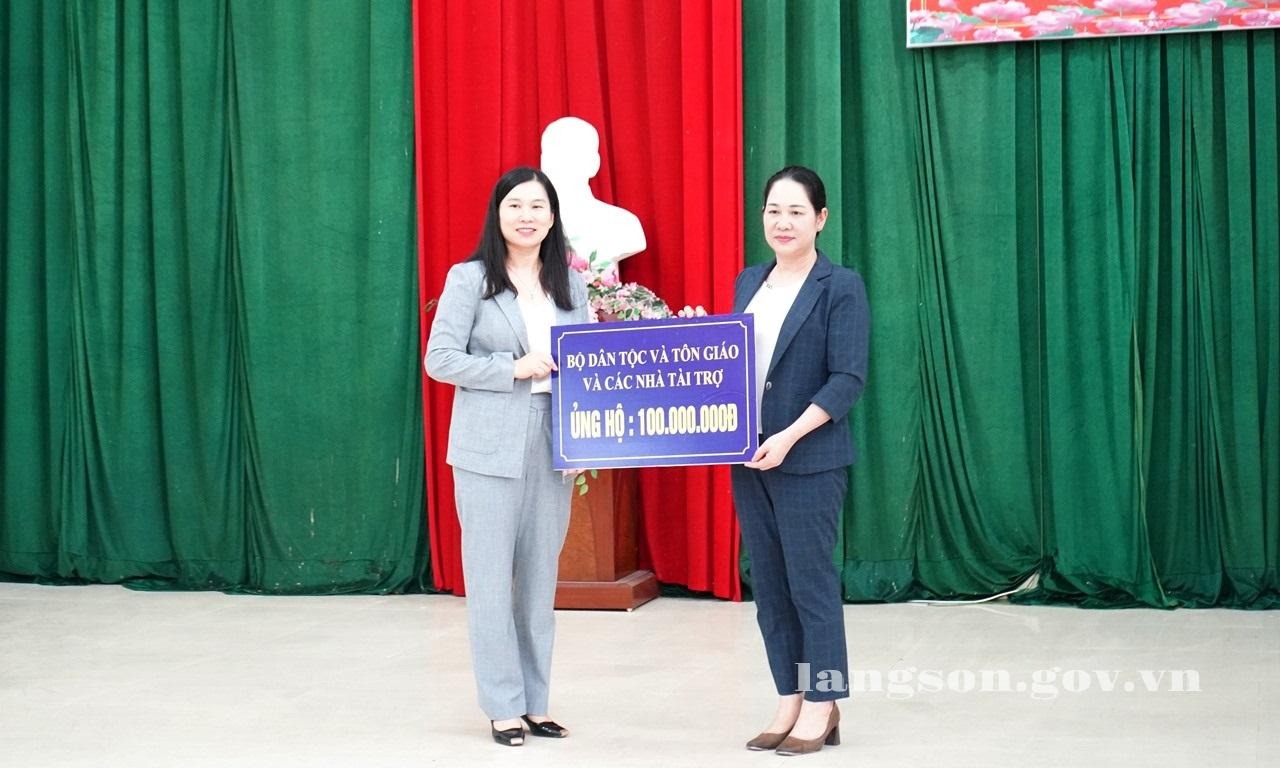 Trong chương trình, Bộ Dân tộc và Tôn giáo cùng các nhà hảo tâm đã trao 100 triệu đồng cho Quỹ cứu trợ của tỉnh Lạng Sơn.