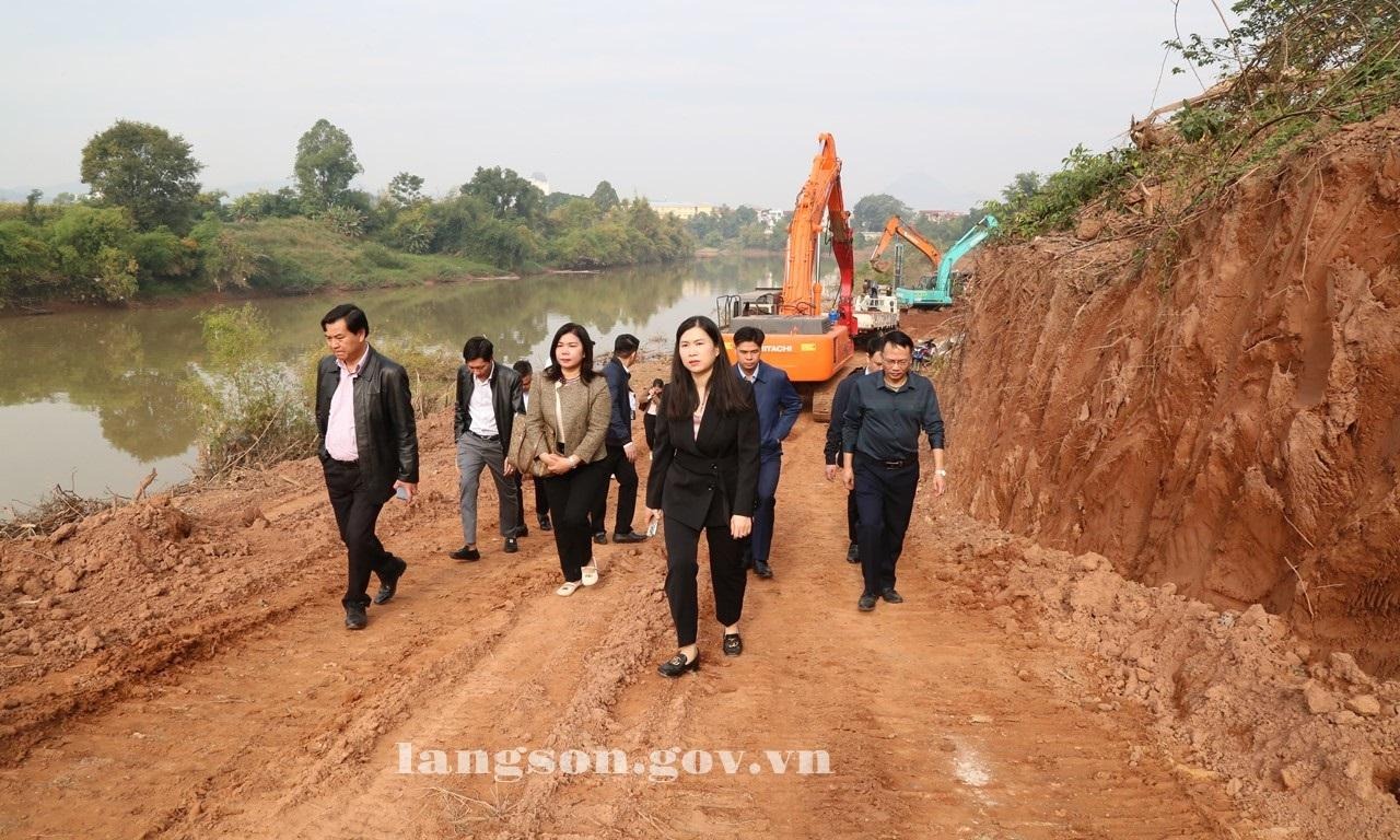 Trong chương trình, đoàn công tác đã kiểm tra thực tế tình hình triển khai thi công dự án Kè chống sạt lở bờ sông Kỳ cùng tỉnh Lạng Sơn, tại địa bàn phường Đông Kinh./.