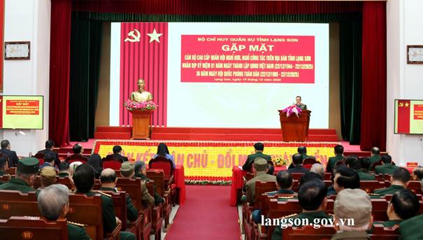 Chiều 19/12/2025, Bộ Chỉ huy Quân sự tỉnh tổ chức gặp mặt cán bộ cao cấp quân đội nghỉ hưu, nghỉ công tác trên địa bàn tỉnh nhân dịp kỷ niệm 81 năm Ngày thành lập Quân đội nhân dân Việt Nam (22/12/1944 - 22/12/2025) và 36 năm Ngày hội Quốc phòng toàn dân (22/12/1989 - 22/12/2025).