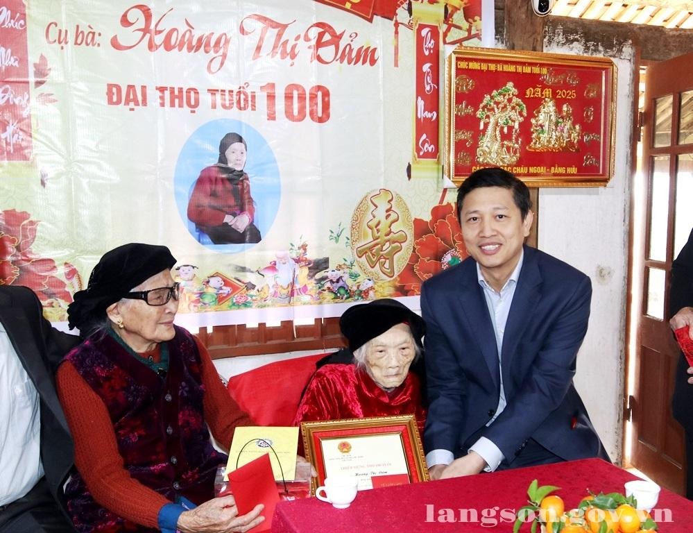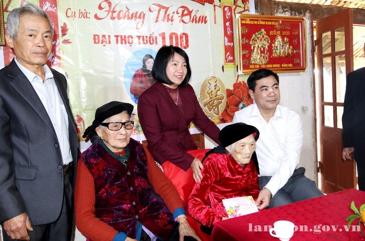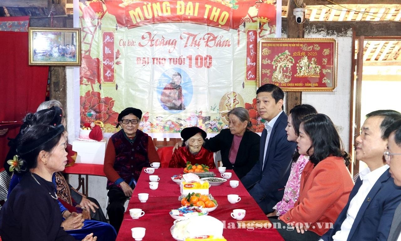 Tại gia đình cụ Hoàng Thị Đảm, đồng chí Vũ Hoàng Anh, Phó Bí thư Tỉnh ủy đã ân cần thăm hỏi sức khỏe cụ và toàn thể gia đình. Đồng chí chúc cụ sống vui, sống khỏe, sống trường thọ cùng con cháu, tiếp tục là chỗ dựa tinh thần cho con cháu, động viên gia đình, dòng họ, cộng đồng dân cư tích cực học tập, lao động sản xuất, góp phần xây dựng quê hương Lạng Sơn ngày càng giàu đẹp.