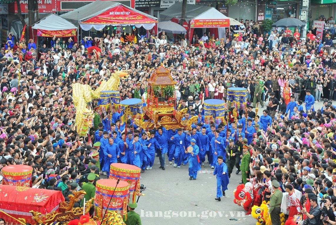 Đông đảo người dân, du khách tham gia nghi lễ rước kiệu tại Lễ hội Kỳ Cùng - Tả Phủ ngày 27 tháng Giêng năm Bính Ngọ