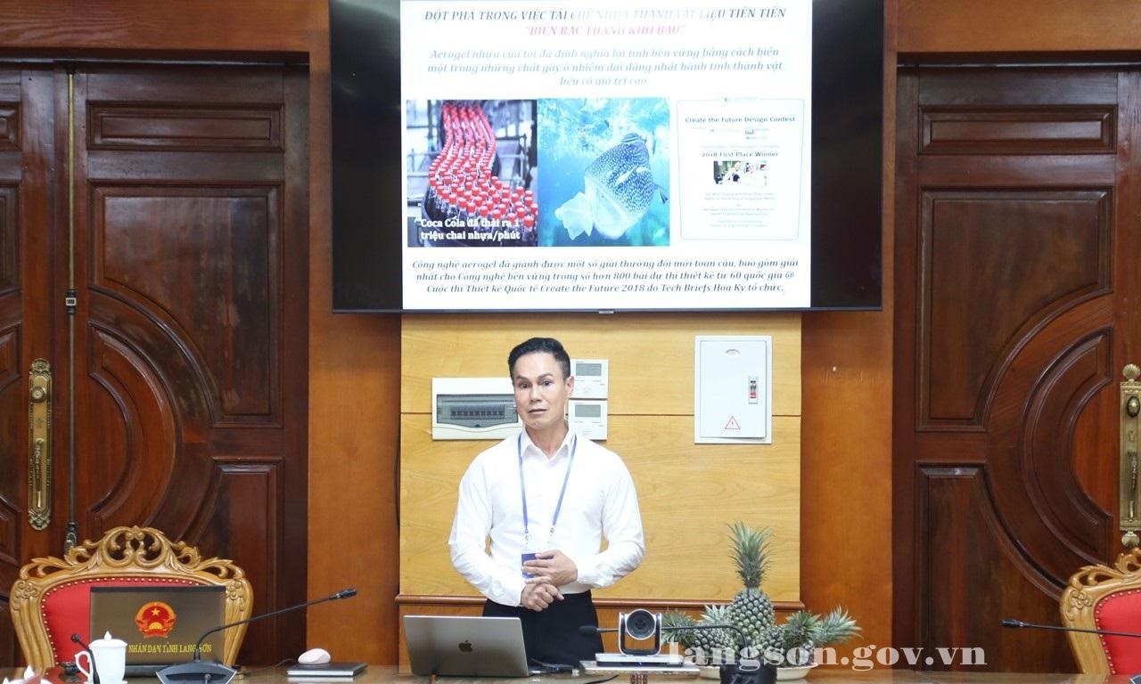 Phát biểu tại buổi gặp gỡ, đồng chí Đoàn Thanh Sơn, Phó Chủ tịch UBND tỉnh trân trọng cảm ơn Phó Giáo sư, Tiến sĩ Dương Minh Hải đã dành thời gian trao đổi với tỉnh về công nghệ chế biến một số sản phẩm từ phụ phẩm lá dứa và các phụ phẩm khác. Đồng chí chia sẻ, tỉnh Lạng Sơn có tiềm năng thế mạnh về sản phẩm nông nghiệp, ngoài dứa còn có những sản phẩm nông nghiệp khác. Các chất thải từ các sản phẩm nông nghiệp này đến nay chưa có phương án xử lý hiệu quả. Từ những trao đổi, chia sẻ của Phó Giáo sư, giúp cho tỉnh có những gợi ý, tư vấn, phương án xử lý hiệu quả vấn đề chất thải nông nghiệp, đặc biệt là các phụ phẩm từ lá dứa, đồng thời, giúp người dân có những sản phẩm nông nghiệp đạt giá trị cao hơn. Đồng chí giao Sở Ngoại vụ phối hợp với Sở Nông nghiệp và Môi trường làm đầu mối để kết nối, trao đổi cụ thể, để tiến hành các bước tiếp theo theo quy định./.