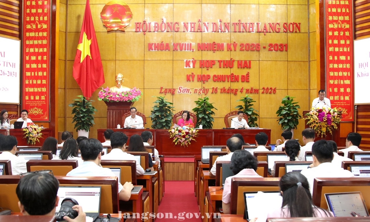 Ngày 16/4/2026, HĐND tỉnh khóa XVIII, nhiệm kỳ 2026 - 2031 tổ chức kỳ họp thứ hai (kỳ họp chuyên đề) để quyết nghị một số nội dung quan trọng. Đồng chí Đoàn Thị Hậu, Phó Bí thư Thường trực Tỉnh ủy, Chủ tịch HĐND tỉnh; đồng chí Dương Xuân Huyên, Ủy viên Ban Thường vụ Tỉnh ủy, Phó Chủ tịch Thường trực HĐND tỉnh; đồng chí Nguyễn Văn Trường, Phó Chủ tịch HĐND tỉnh đồng chủ toạ kỳ họp.