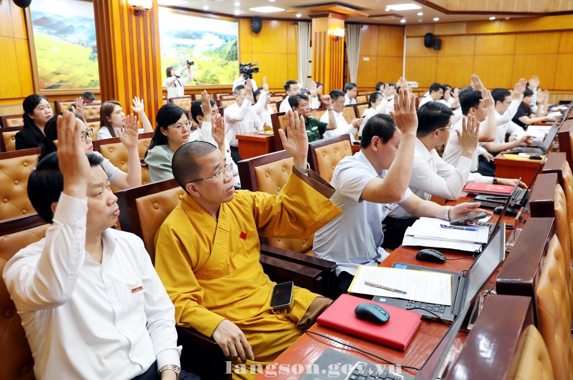 Cùng với đó, các đại biểu nghe tờ trình, dự thảo nghị quyết của HĐND tỉnh và báo cáo thẩm tra của các ban HĐND tỉnh về các nội dung: bãi bỏ Nghị quyết số 57/NQ-HĐND ngày 08/12/2023 của HĐND tỉnh về việc thông qua đồ án Quy hoạch xây dựng vùng liên huyện Cao Lộc - Lộc Bình - Đình Lập (khu vực dọc tuyến Quốc lộ 4B), tỉnh Lạng Sơn đến năm 2045, tỷ lệ 1/25.000 và Nghị quyết số 11/NQ-HĐND ngày 19/4/2023 của HĐND tỉnh về việc thông qua Đồ án Quy hoạch phân khu xây dựng Khu du lịch sinh thái và Khu dân cư mới tại xã Hữu Liên, xã Yên Thịnh, huyện Hữu Lũng, tỉnh Lạng Sơn, tỷ lệ 1/2.000; quy định mức chi phí quản lý thực hiện các chính sách ưu đãi người có công với cách mạng trên địa bàn tỉnh; Quy định một số chính sách hỗ trợ đối với công tác bảo vệ, chăm sóc sức khỏe trên địa bàn tỉnh; quy định tổng mức chi trong xây dựng Quyết định quy phạm pháp luật của Chủ tịch Ủy ban nhân dân tỉnh.