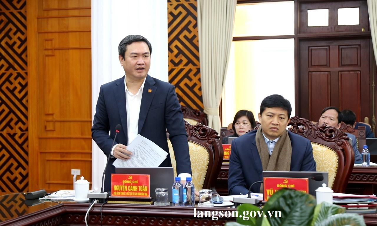 Đồng chí Nguyễn Cảnh Toàn, Phó Bí thư Tỉnh ủy, Chủ tịch UBND tỉnh, Phó Trưởng Ban Thường trực Ban Chỉ đạo phát biểu tại hội nghị