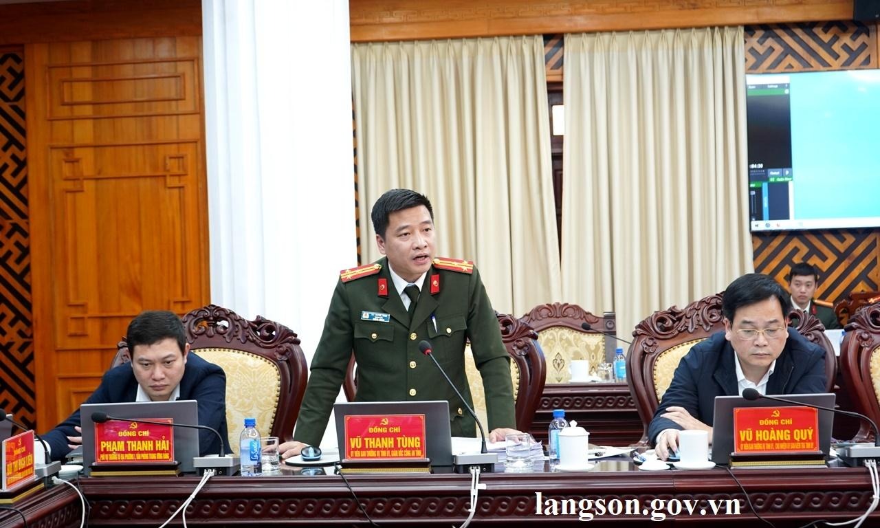 Đồng chí Vũ Thanh Tùng, Ủy viên Ban Thường vụ Tỉnh ủy, Giám đốc Công an tỉnh phát biểu tại hội nghị