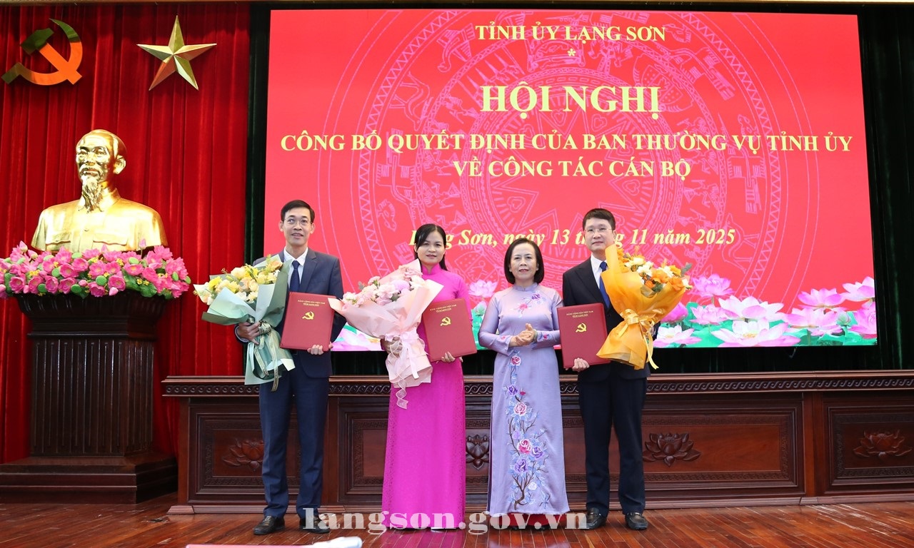 Chiều 13/11/2025, Tỉnh uỷ Lạng Sơn đã tổ chức Hội nghị công bố quyết định của Ban Thường vụ Tỉnh uỷ về công tác cán bộ. Dự hội nghị công bố có đồng chí Đoàn Thị Hậu, Phó Bí thư Thường trực Tỉnh uỷ, Chủ tịch HĐND tỉnh; đồng chí Giáp Thị Bắc, Ủy viên Ban Thường vụ Tỉnh ủy, Trưởng Ban Tổ chức Tỉnh ủy; lãnh đạo Văn phòng Tỉnh ủy; Văn phòng UBND tỉnh; lãnh đạo Đảng ủy phường Lương Văn Tri và các xã Tuấn Sơn, Hữu Lũng…