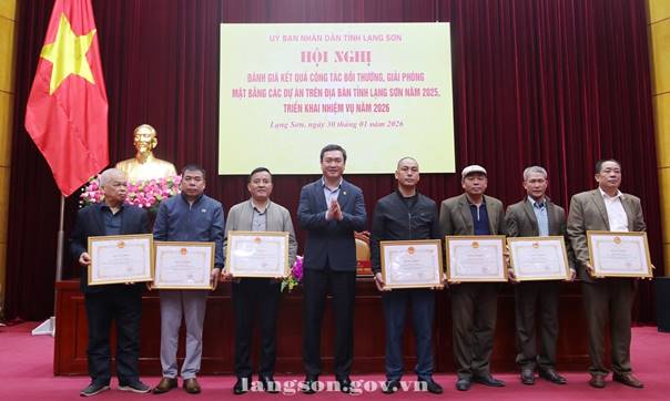 Nhân dịp này, UBND tỉnh tặng Bằng khen cho 07 cá nhân chấp hành tốt quy định bàn giao giải phóng mặt bằng cho các dự án trọng điểm trên địa bàn tỉnh Lạng Sơn năm 2025; tặng Bằng khen cho 22 tập thể, 51 cá nhân có thành tích tiêu biểu, xuất sắc trong phong trào thi đua đẩy nhanh tiến độ thực hiện giải phóng mặt bằng các dự án trọng điểm của tỉnh Lạng Sơn năm 2025./.