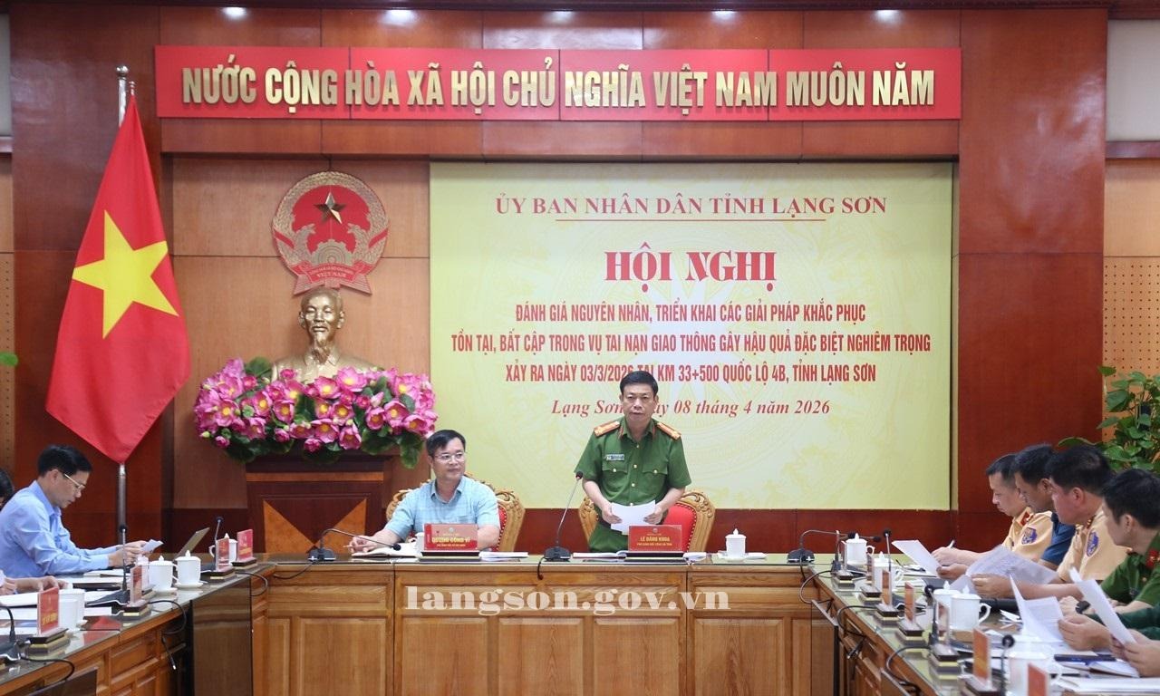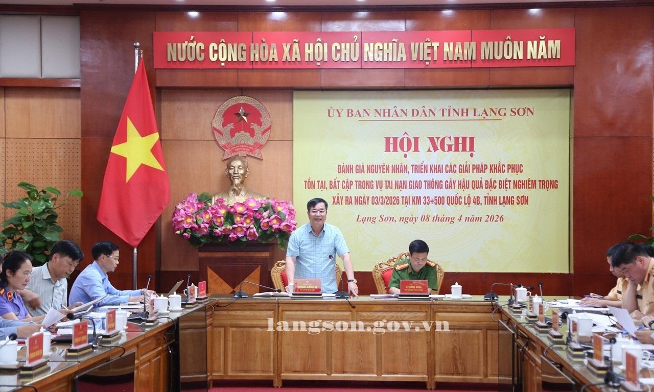 Ngày 08/4/2026, UBND tỉnh tổ chức Hội nghị đánh giá nguyên nhân, triển khai các giải pháp khắc phục tồn tại, bất cập trong vụ tai nạn giao thông (TNGT) gây hậu quả đặc biệt nghiêm trọng xảy ra ngày 03/3/2026 tại Km 33+500 Quốc lộ 4B. Thừa ủy quyền của Chủ tịch UBND tỉnh, Trưởng Ban An toàn giao thông tỉnh, đồng chí Dương Công Vĩ, Giám đốc Sở Xây dựng, Phó Trưởng Ban Thường trực Ban An toàn giao thông (ATGT) tỉnh chủ trì hội nghị.