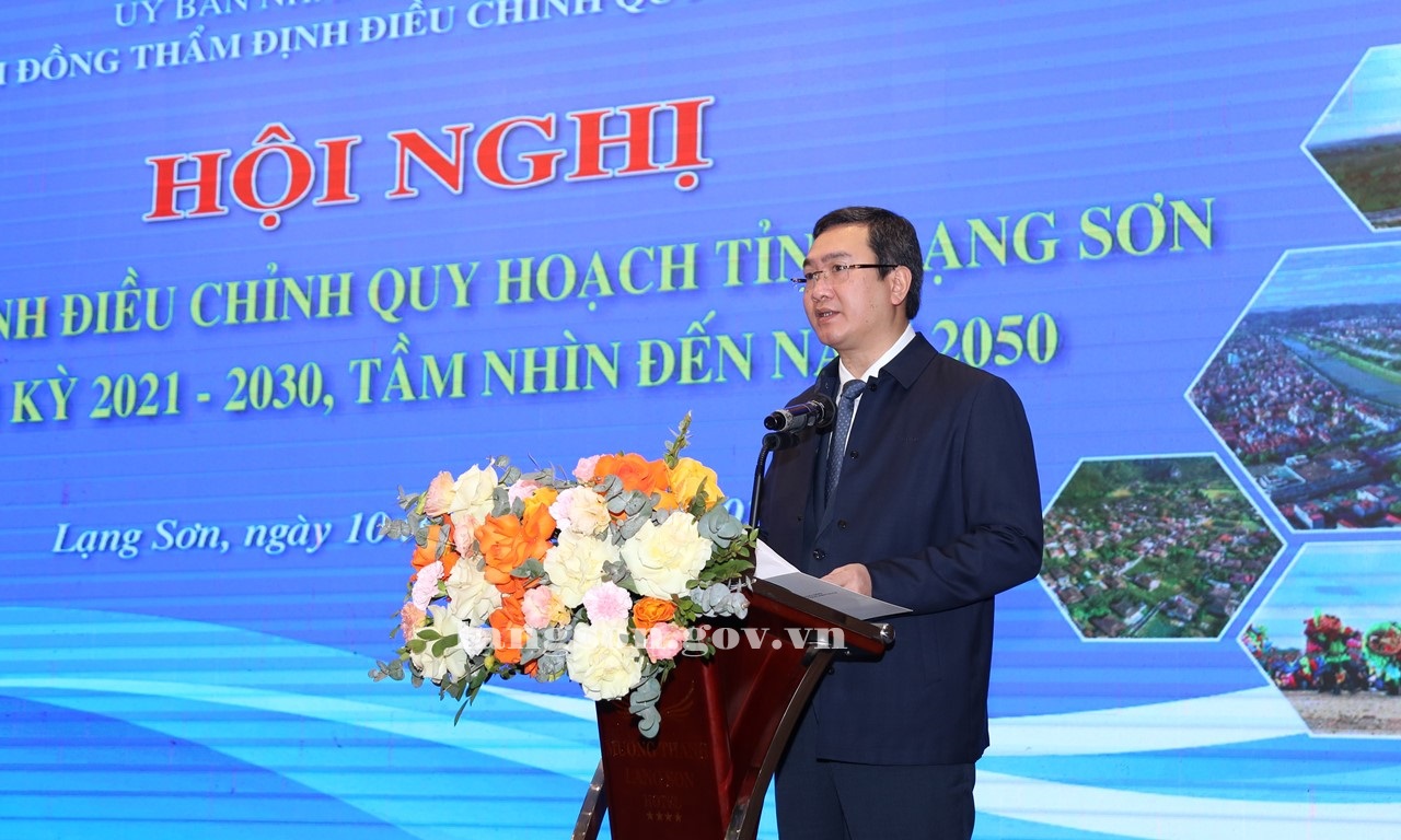 Đồng chí nhấn mạnh: tỉnh Lạng Sơn có nhiều tiềm năng, dư địa phát triển, việc điều chỉnh Quy hoạch tỉnh có ý nghĩa rất quan trọng trong việc chọn lọc những nội dung không còn phù hợp với điều kiện phát triển mới, cập nhật, tích hợp các định hướng, chủ trương theo Nghị quyết Đại hội XIV của Đảng, Nghị quyết Đại hội Đảng bộ tỉnh lần thứ XVIII; đồng thời xây dựng kịch bản tăng trưởng nhằm khai thác tối ưu tiềm năng, thế mạnh của tỉnh, đẩy mạnh liên kết vùng; tạo đột phá trong huy động, phân bổ, khai thác và sử dụng tối ưu các nguồn lực trong phát triển, phấn đấu thực hiện mục tiêu tăng trưởng 2 con số giai đoạn 2026 – 2030.