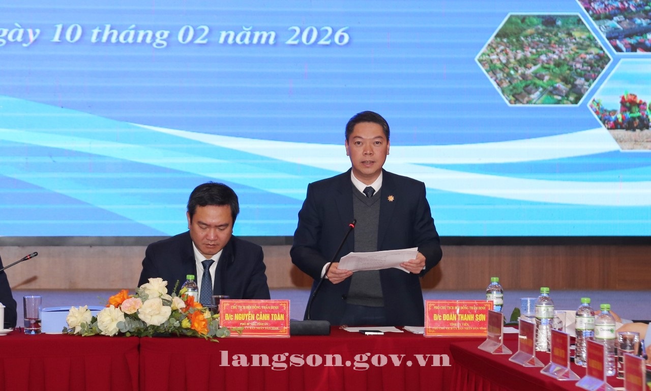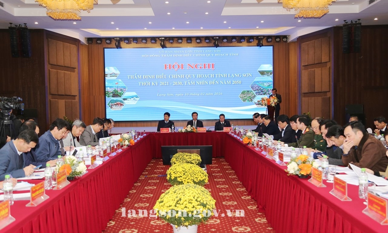 Ngày 10/02/2026, Hội đồng thẩm định điều chỉnh quy hoạch tỉnh tổ chức Hội nghị thẩm định điều chỉnh quy hoạch tỉnh Lạng Sơn thời kỳ 2021 - 2030, tầm nhìn đến năm 2050. Đồng chí Nguyễn Cảnh Toàn, Phó Bí thư Tỉnh ủy, Chủ tịch UBND tỉnh, Chủ tịch Hội đồng thẩm định tỉnh chủ trì hội nghị.