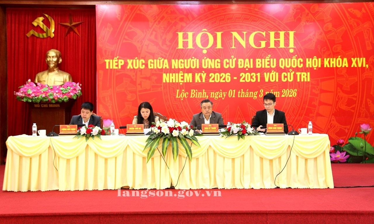 Ngày 01/03/2026, tại xã Lộc Bình, Ban Thường trực Ủy ban Mặt trận Tổ quốc tỉnh Lạng Sơn tổ chức Hội nghị tiếp xúc cử tri để người ứng cử đại biểu Quốc hội (ĐBQH) khóa XVI, nhiệm kỳ 2026 - 2031 vận động bầu cử thuộc đơn vị bầu cử số 1.