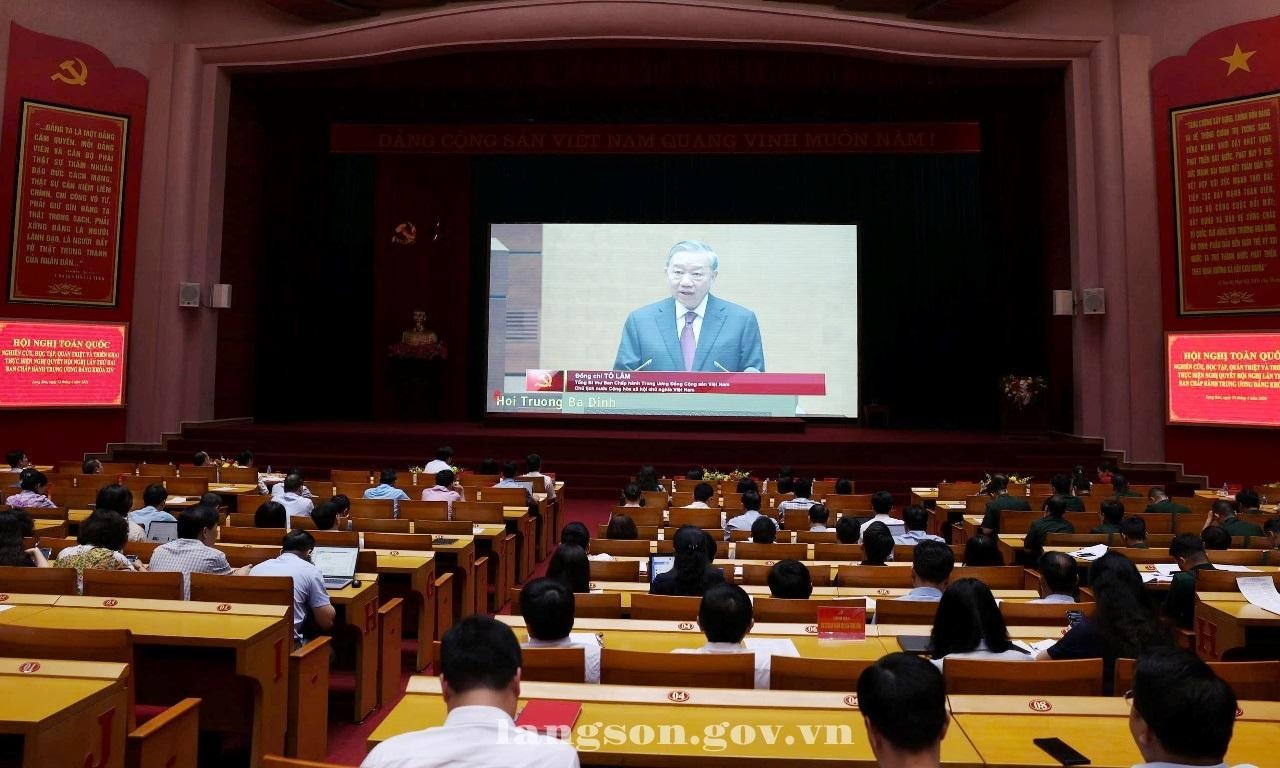 Dự hội nghị tại điểm cầu tỉnh Lạng Sơn có đồng chí Hoàng Quốc Khánh, Ủy viên Trung ương Đảng, Bí thư Tỉnh ủy; đồng chí Đoàn Thị Hậu, Phó Bí thư Thường trực Tỉnh ủy, Chủ tịch HĐND tỉnh; đồng chí Nguyễn Cảnh Toàn, Phó Bí thư Tỉnh ủy, Chủ tịch UBND tỉnh; đồng chí Đoàn Thu Hà, Phó Bí thư Tỉnh ủy, Trưởng Đoàn đại biểu Quốc hội tỉnh, Chủ tịch Ủy ban MTTQ Việt Nam tỉnh; đồng chí Vũ Hoàng Anh, Phó Bí thư Tỉnh ủy; các đồng chí Ủy viên Ban Thường vụ Tỉnh ủy, lãnh đạo các sở, ban, ngành của tỉnh, các đồng chí báo cáo viên cấp tỉnh. Hội nghị được kết nối đến 792 điểm cầu cấp xã và tương đương với 28.600 đại biểu tham dự.