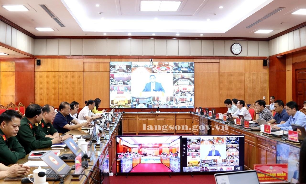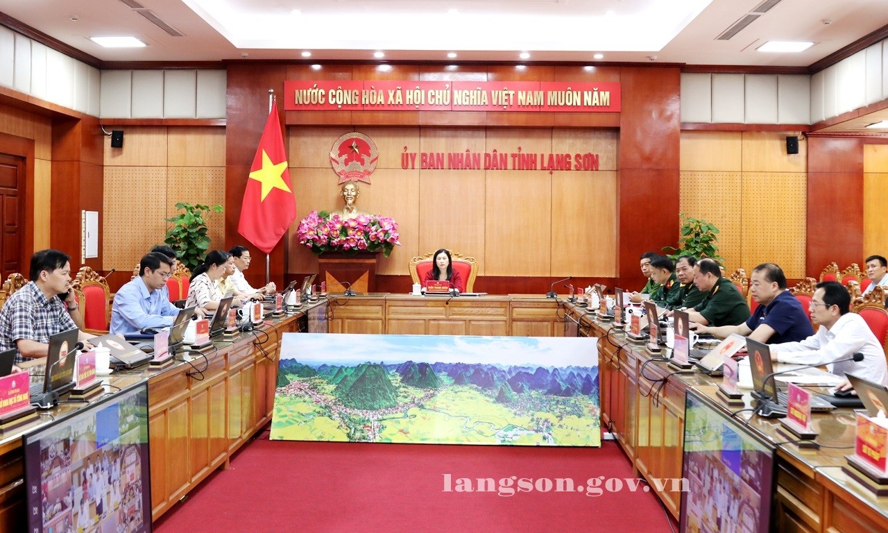 Quang cảnh hội nghị tại điểm cầu trụ sở UBND tỉnh Lạng Sơn