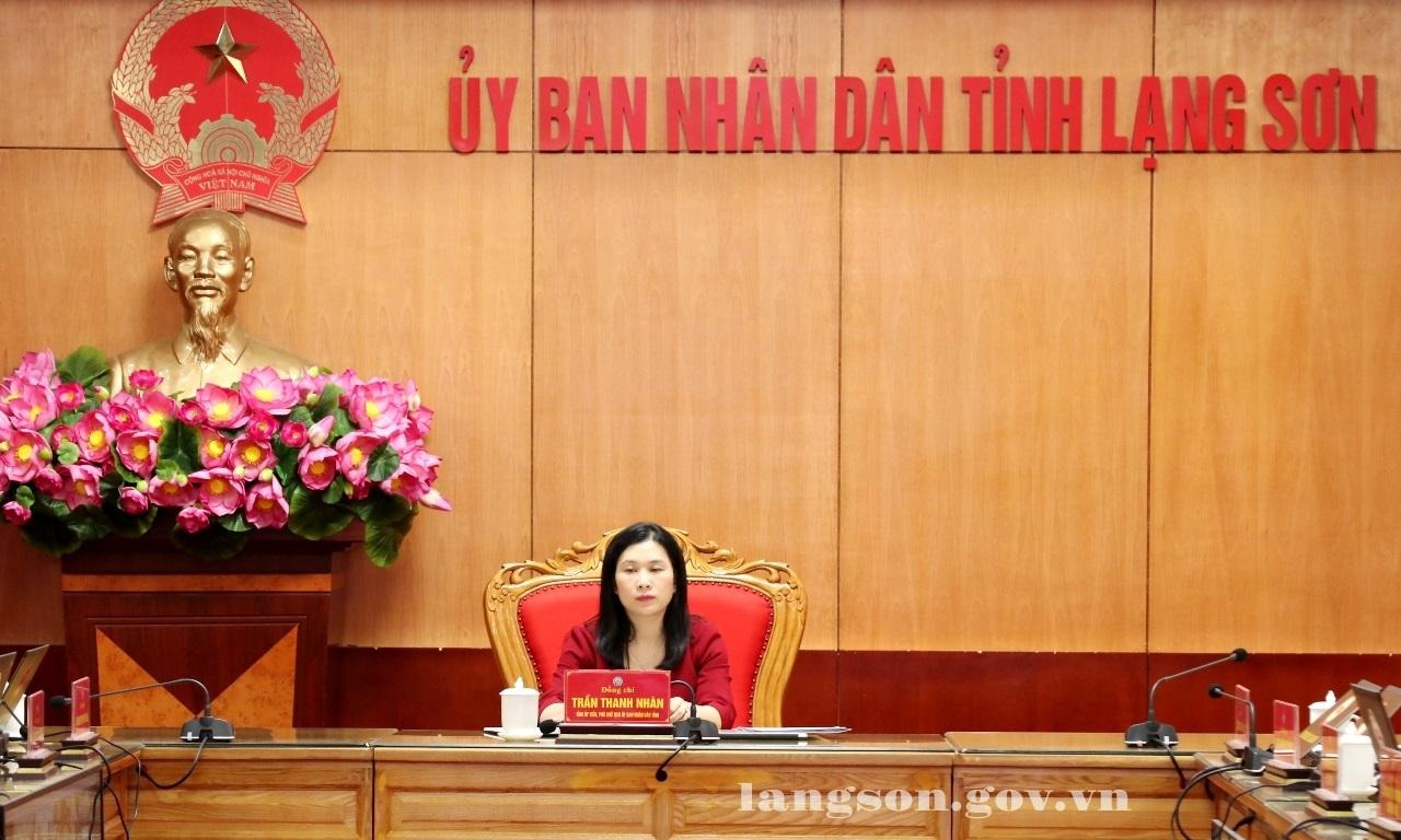 Đồng chí Trần Thanh Nhàn, Phó Chủ tịch UBND tỉnh dự hội nghị tại điểm cầu trụ sở UBND tỉnh Lạng Sơn