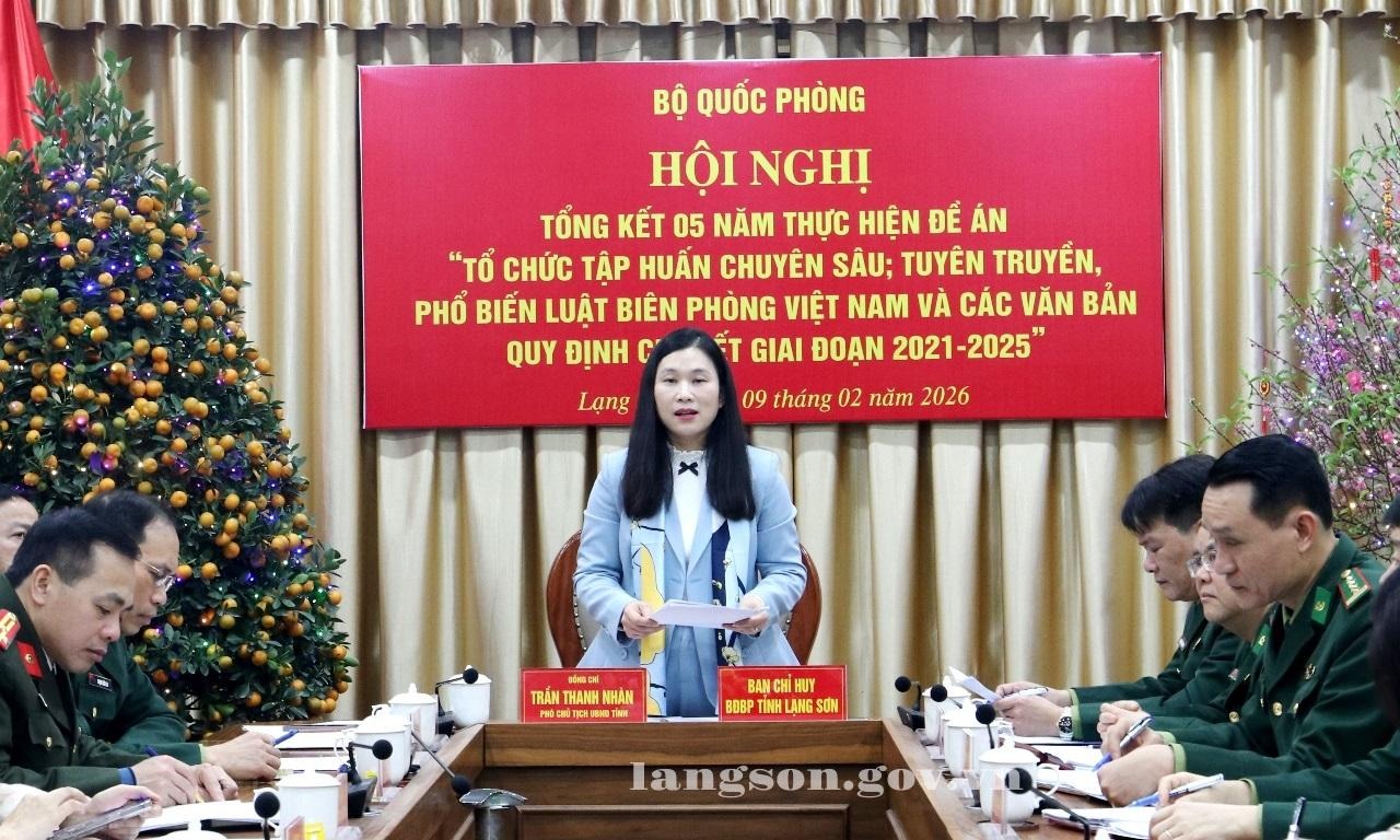Phát biểu tham luận tại hội nghị, đồng chí Trần Thanh Nhàn, Phó Chủ tịch UBND tỉnh nhấn mạnh, sau 5 năm triển khai Đề án, Lạng Sơn đã tổ chức thực hiện đồng bộ từ tỉnh đến cơ sở, xác định tuyên truyền Luật Biên phòng Việt Nam là nhiệm vụ thường xuyên gắn với bảo vệ chủ quyền, giữ vững an ninh biên giới.