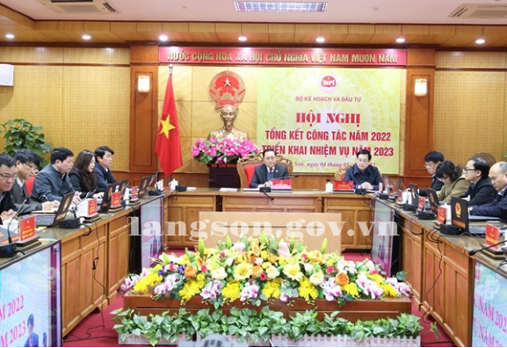Sáng 04/01/2023, Thủ tướng Chính phủ Phạm Minh Chính dự Hội nghị tổng kết công tác năm 2022 và triển khai nhiệm vụ năm 2023 của ngành kế hoạch và đầu tư. Hội nghị do Bộ Kế hoạch và Đầu tư tổ chức trực tiếp kết hợp trực tuyến với 63 tỉnh, thành phố trực thuộc Trung ương. Dự hội nghị tại điểm cầu tỉnh Lạng Sơn có đồng chí Hồ Tiến Thiệu, Phó Bí thư Tỉnh uỷ, Chủ tịch UBND tỉnh và các sở ngành liên quan.