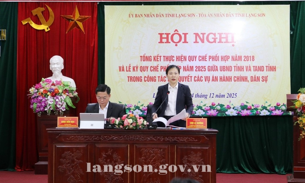 Chiều 24/12/2025, UBND tỉnh phối hợp với Tòa án nhân dân (TAND) tỉnh tổ chức Hội nghị tổng kết thực hiện quy chế phối hợp số 01/QCPH-UBND-TAND ngày 15/9/2018 giữa UBND và TAND tỉnh trong công tác giải quyết các vụ án hành chính, dân sự.