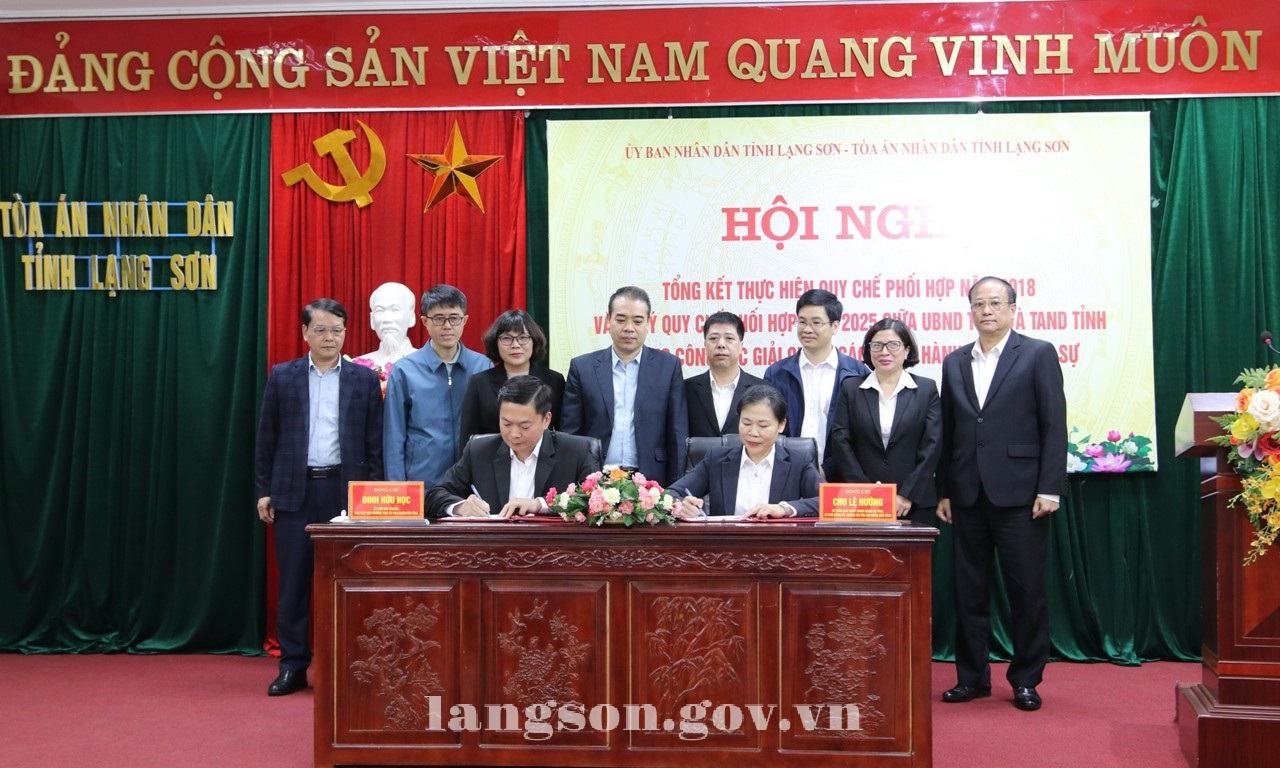 Trong chương trình hội nghị, lãnh đạo UBND tỉnh và TAND tỉnh đã ký kết Quy chế phối hợp mới năm 2025. Quy chế mới được điều chỉnh, bổ sung theo hướng rõ trách nhiệm, rõ đầu mối, rõ quy trình phối hợp, bảo đảm phù hợp với mô hình chính quyền địa phương hai cấp và các quy định pháp luật hiện hành, tạo cơ sở pháp lý quan trọng để nâng cao hiệu quả phối hợp trong công tác giải quyết các vụ án hành chính, dân sự trên địa bàn tỉnh trong thời gian tới.