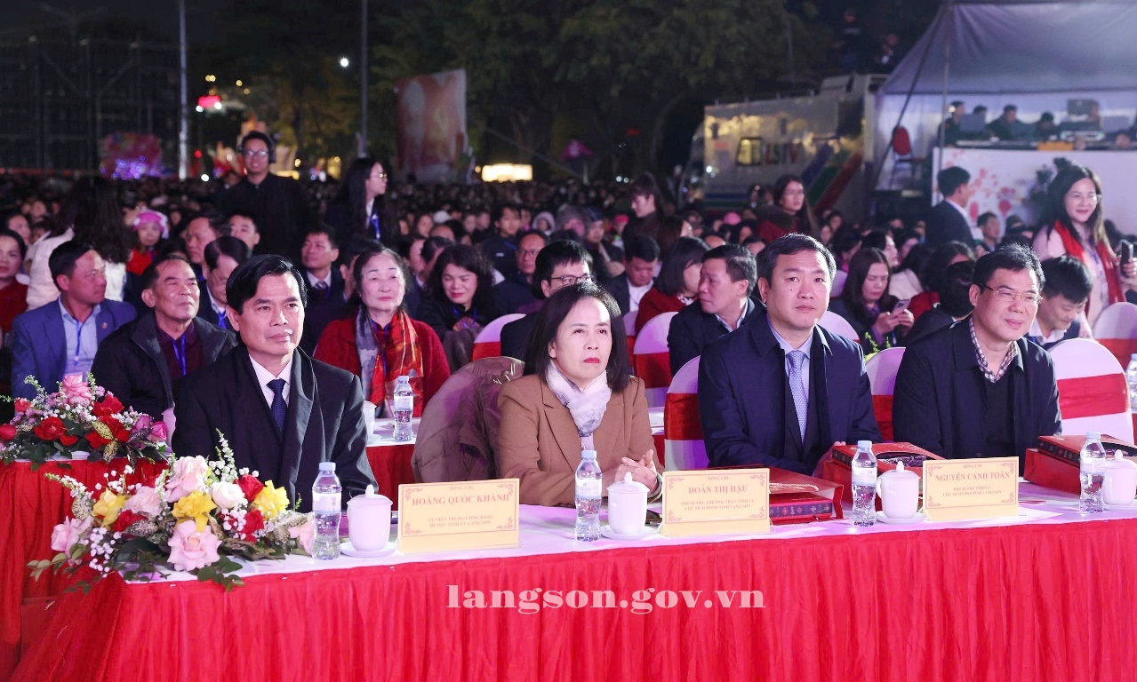 Về phía tỉnh Lạng Sơn có các đồng chí Hoàng Quốc Khánh, Ủy viên Trung ương Đảng, Bí thư Tỉnh uỷ; đồng chí Đoàn Thị Hậu, Phó Bí thư Thường trực Tỉnh uỷ, Chủ tịch HĐND tỉnh; đồng chí Nguyễn Cảnh Toàn, Phó Bí thư Tỉnh ủy, Chủ tịch UBND tỉnh; đồng chí Hồ Tiến Thiệu, nguyên Phó Bí thư Tỉnh ủy, nguyên Chủ tịch UBND tỉnh; đồng chí Đoàn Thanh Sơn, Phó Chủ tịch UBND tỉnh, Trưởng Ban tổ chức Lễ hội Hoa Đào Xứ Lạng và các hoạt động mừng Đảng, mừng Xuân Bính Ngọ năm 2026; các đồng chí Ủy viên Ban Thường vụ Tỉnh ủy; lãnh đạo HĐND, UBND tỉnh; các đồng chí nguyên lãnh đạo tỉnh qua các nhiệm kỳ; lãnh đạo các sở, ban, ngành, đoàn thể tỉnh; lãnh đạo Đảng ủy, UBND các xã, phường trên địa bàn tỉnh cùng cùng đông đảo người dân, du khách trong nước và nước ngoài.