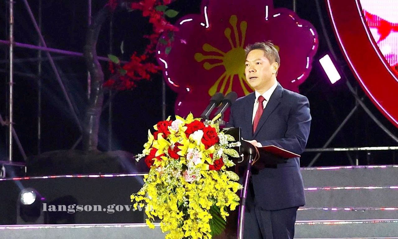 Phát biểu khai mạc Lễ hội, đồng chí Đoàn Thanh Sơn, Phó Chủ tịch UBND tỉnh nhấn mạnh: Lễ hội Hoa Đào Xứ Lạng năm 2026 được tổ chức trong không khí phấn khởi chào mừng thành công Đại hội đại biểu toàn quốc lần thứ XIV của Đảng và kỷ niệm 96 năm Ngày thành lập Đảng Cộng sản Việt Nam. Hoa Đào từ lâu đã trở thành biểu tượng đặc trưng của mùa Xuân Xứ Lạng - biểu tượng của khí phách, sức sống, khát vọng vươn lên của con người và vùng đất nơi địa đầu Tổ quốc.