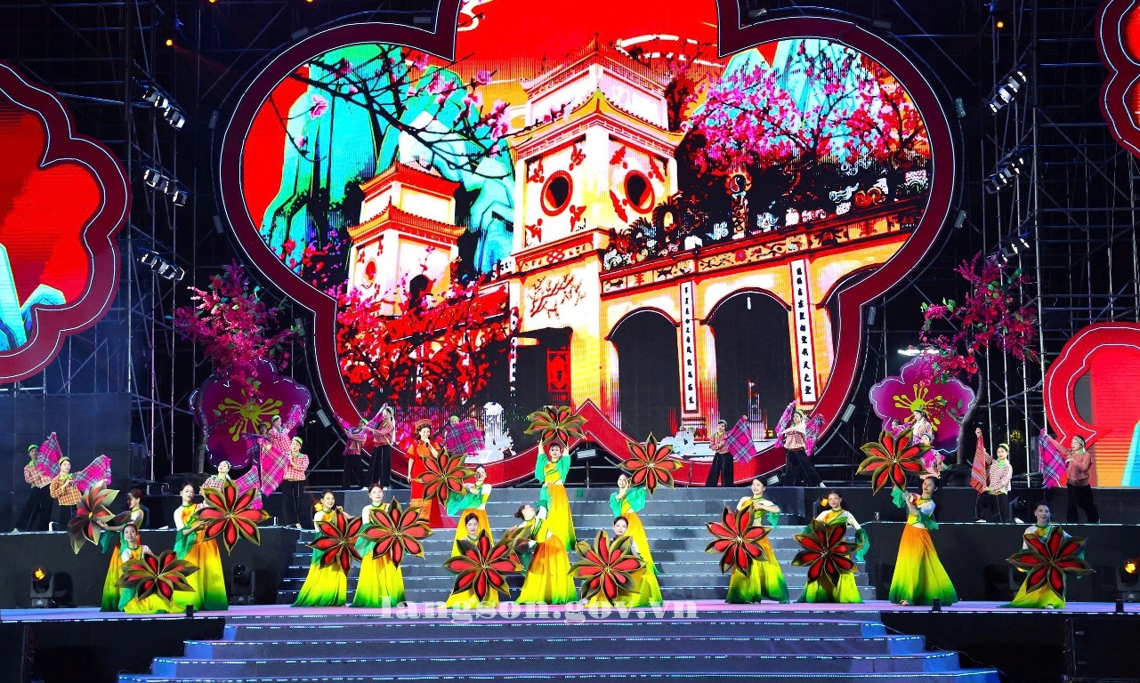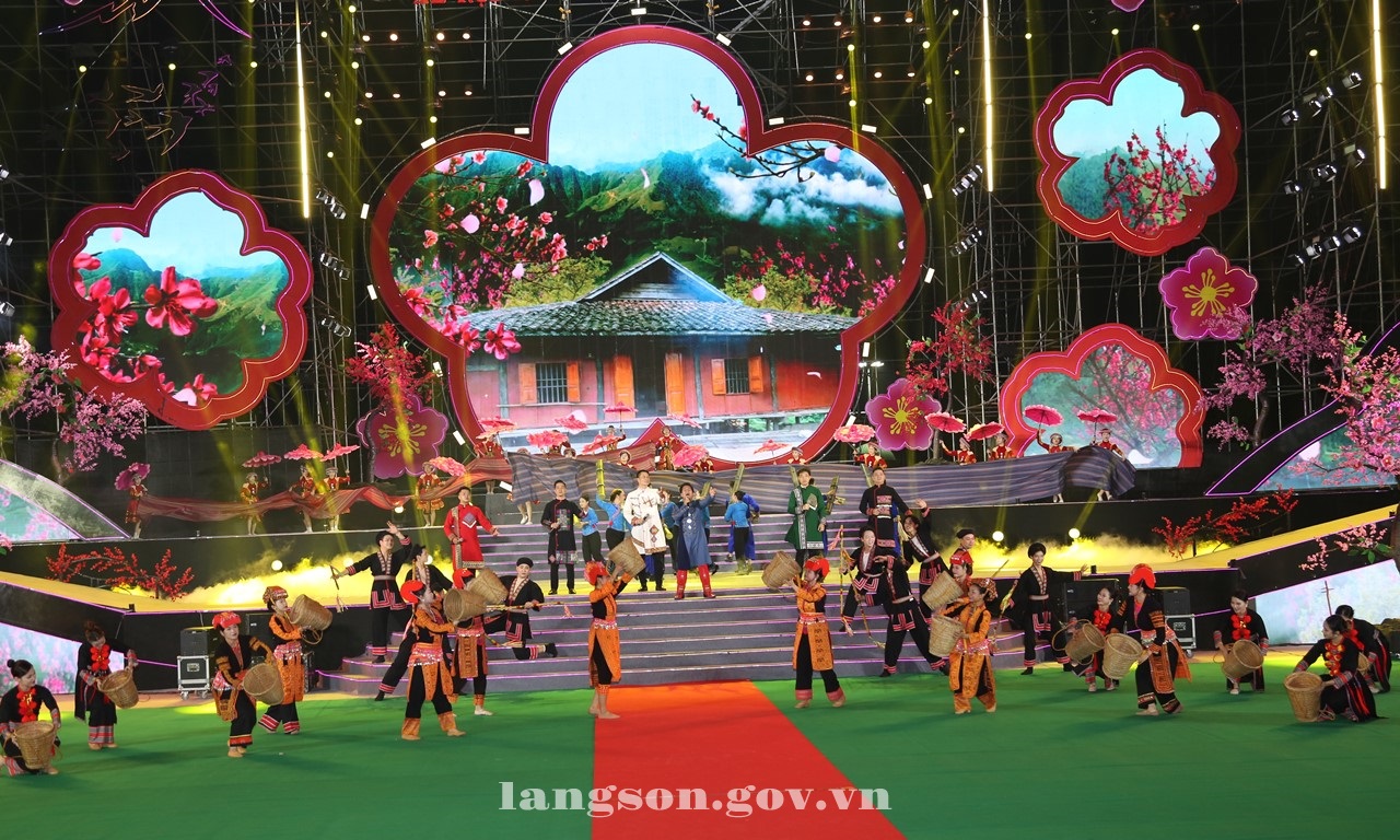 Ngoài tiết mục khai màn với chủ đề “Lạng Sơn mùa Lễ hội”; khán giả còn được thưởng thức chương trình nghệ thuật đặc sắc được dàn dựng bài bản và công phu với 3 chương gồm: “Sức sống Hoa Đào”; “Sắc Đào Xứ Lạng tình thắm muôn phương”; “Mùa Xuân dâng Đảng quang vinh” .